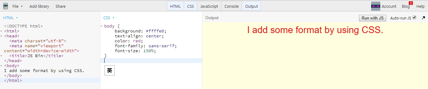 background: Set the background color (by using name or color code, ex: yellow, #0088ff,here is the color code)text-align: Set the alignment of the text (left/center/right/justify)color: Set the text colorfont-family: Set the text font (ex: serif, cursive, fantasy, monospace...)font-size: Set the text size (ex: 16px, 140%)