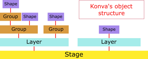 Konva.Shape) or groups (Konva.Group) - Each group contains shapes (